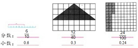 ,用小数表示是0.01,其中阴影部分是24份,用分数表示就是24个