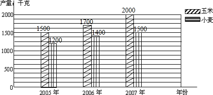 答:从2005年到2007年玉米增产了500千克,增产了33.3%.