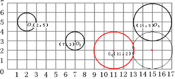 解答: 解:(1)图中圆心O1的位置是 (2,5),圆心O2的位置是(7,3),圆心03的位置是(15,5).