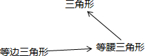 分析:根据三角形、等腰三角形和等边三角形的含义可知:等边三角形是特殊的等腰三角形,等腰三角形是特殊的三角形;由此解答即可.