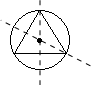 根据题干分析可得,这个图形一共有3条对称轴,分别是经过圆心,且垂直于三角形的三条边的直线,据此画出其中两条如下: