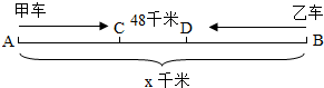 解答: 解:如图,甲乙两车分别从A、B出发,5小时后分别到达C、D,CD=48千米,