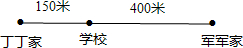 军军家在学校东面400米,学校在丁丁家东面150米,那么丁丁家在军军家