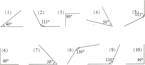 先量出下列各角的度数,再将它们分类.