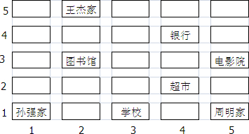 孙强家的位置是( 1,1),学校的位置是( 3,1).