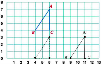 (2)画出三角形向下平移4格再向右平移5格后的图形.