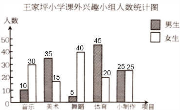 如图是王坪村小学男、女生参加课外活动小组的人数统计图.