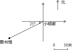 则图书馆与小明家的图上距离为:150÷50=3(厘米),