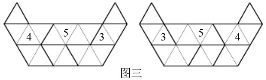 分析:根据图二的特点,4向右旋转60°放在左边或向左旋转60°放在右边,中间放5,另一边放3,即可得解.