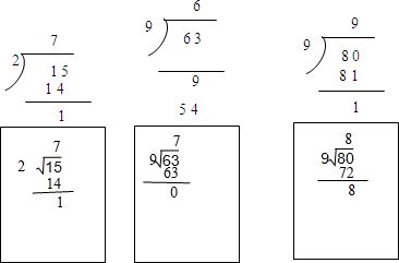 点评:本题考查了简单的两位数除以一位数的竖式计算,注意数位要对齐.