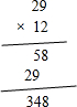 | 29×12= | 24×56= | 363÷3= |