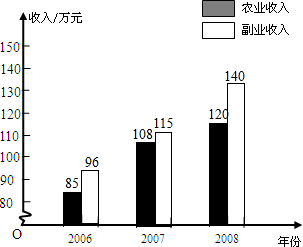(1)根据统计图中直条的长度,可知2008年的农业收入最多,是120万元;