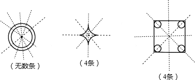 只有一条对称轴有两条对称轴有无数条对称轴.