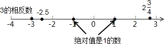 (2)-2.5  (3)3的相反数  (4)绝对值等于1的数.