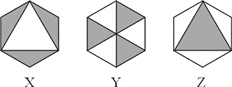 如图,这三个正六边形大小相同.X、Y、Z分别表示三个六边形中阴影部分的面积.下面的说法(  )正确.