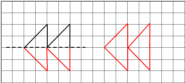 先画出下面图形的轴对称图形,然后将此完整的图形向右平移7个格.