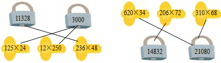 分析:根据整数乘法的计算方法先求出积,再进行连线.