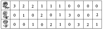 3朵花,把不同的拿法填在表中,写出结果.![]()