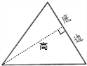 分析:经过三角形的顶点(与底相对的点)向对边(底)作垂线,顶点和垂足之间的线段就是三角形的一条高,用三角板的直角可以画出三角形的高;求三角形的面积需要的数据是底和高,用刻度尺分别量出这个三角形的底和高,再根据三角形面积公式S=