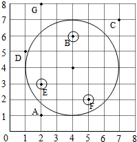 ①下面哪些位置的建筑能收到发射塔发出的信号(请将你选的点圈起来),如果能,请分别用数对表示出它们的位置.D(