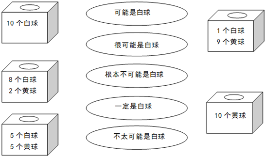连一连,从下面的5个盒子里,分别摸出1个球.