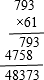 793×61= | 766÷36= | 7200÷600= |
