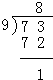 | 73÷9= | 65÷7= | 43÷5= | 48÷6= |