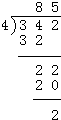 342÷4=85…2