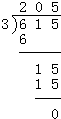 615÷3=205