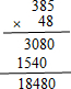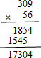 | 309×56= | 48×385= | 492÷63= | 912÷38= |
