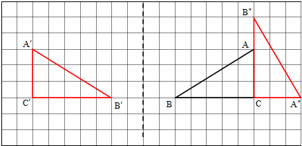 (1)以给出的虚线为对称轴,画出三角形ABC的轴对称图形.