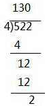 522÷4=130…2![]()