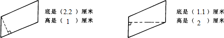 量一量下面图中每个平行四边形的底和高各是多少厘米