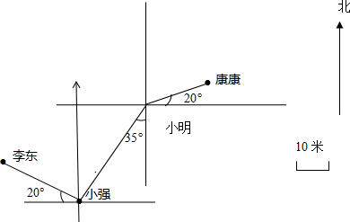 (3)李东在小强的西偏北20°的方向上,距离20米.