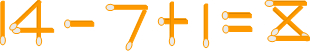 分析:等式右边结果是8,可使左边变成9-1或7+1,9-1算式难以出现9,可选择7+1,这样经移动算式变为:把加数2的下面一根移到4的前面变为14,再把加号的一根移到后面的减号上使减号变成加号即可.