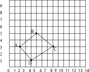 解答: 解:A(2,3),B(5,5),C(8,3),D(5,1),并依次连接这四个点,如下图: