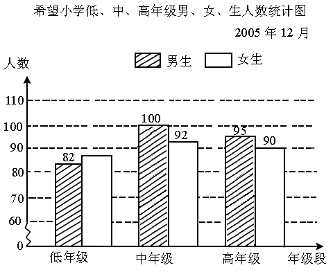 秦奋收集到希望小学低、中、高年级男、女生人数分别是: