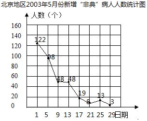 (2)从折线统计图可以看出新增“非典”病人的人数逐渐减少,病情基本控制住;