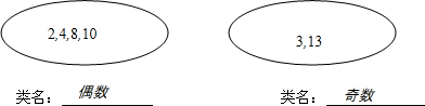 把2、3、4、8、10、13分成两类填入集合圈内,并给它们填上合适的类名.