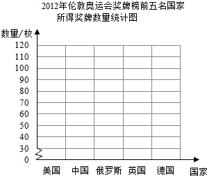 2012年伦敦奥运会奖牌榜前五名国家所得奖牌数情况如下表: