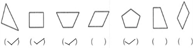 下面的图形哪些是对称的?是的请画√.
