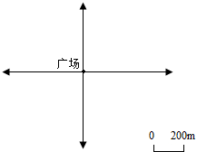 (1)在图中表示出图书馆的位置:图书馆在广场的东偏南30°方向600m处.根据上面的描述,在图中标出其所在位置.