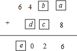 分析:如图,a+8=16,可得a=8;十位上b+c=1或11;如果b+c=1,则d=6,e=7;如果b+c=11,则d=5,e=7;