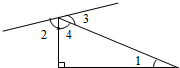 分析:根据∠2+∠3+∠4=180度,求出∠4的度数,然后根据三角形的内角和是180度,求出∠1的度数即可.