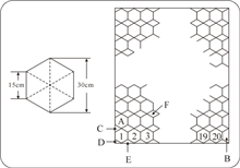 如图,在大房间一面墙壁上,边长为l5cm的正六边形A(如图)横排20片和以其一部分所形成的梯形B,三角形C、D、E,菱形F等六种瓷砖毫无空隙地排列在一起.已知墙壁高3.3m,请你仔细观察各层瓷砖的排列特点,计算其中菱形F瓷砖需使用