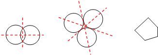 根据轴对称图形的定义可知:第一个图形有2条对称轴,第二个图形有三条对称轴,第三个图形不是轴对称图形,没有对称轴,画出它们的对称轴如图所示: