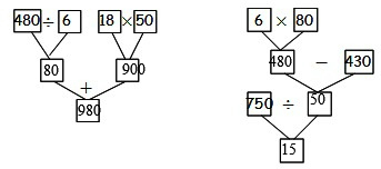 | (1)135÷27+12×4 | (2)1620-1320÷60×70 | (3)520÷[13×(43-39)] |