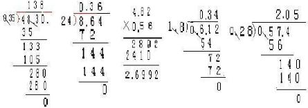 分析:除数是小数的小数除法法则:先看除数中有几位小数,然后将除数的小数点向右移动几位,将小数化成整数,然后再把被除数的小数点向右移动几位,数位不够的用零补足; 然后按照除数是整数的小数除法来除.