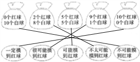下面第一排表示了各袋中球的情况,请你用第二排的语言来描述摸到红球的可能性大小,并用线连起来.