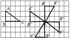 把三角形ABC向右平移5格后得到一个新的三角形A'B'C',再连续3次绕C'点顺时针旋转900